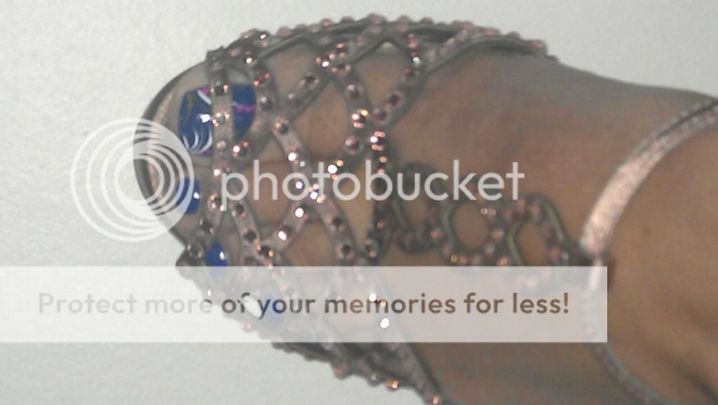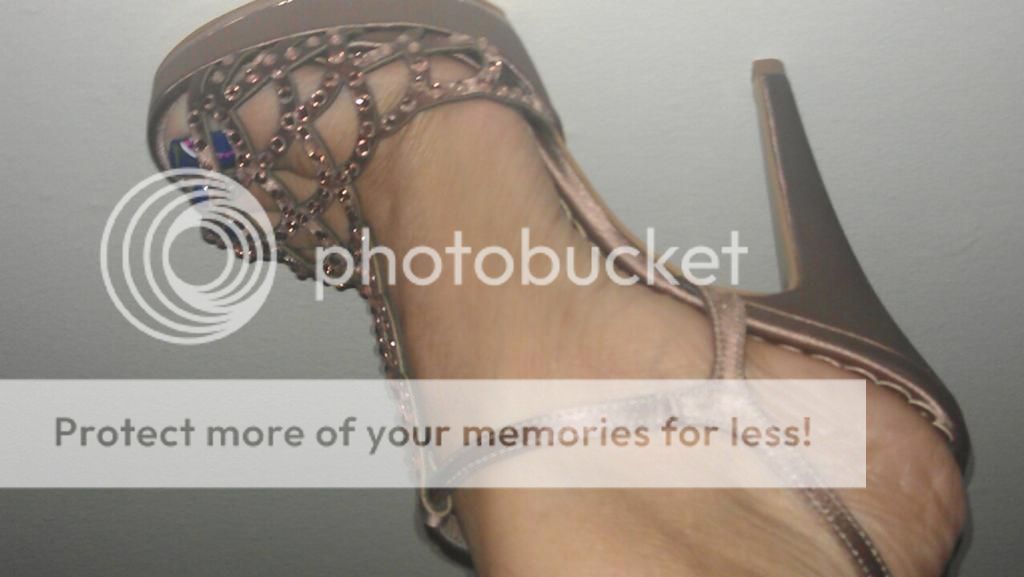 I know the shots are boring because she's taking them herself AND IT'S A DAMNED CAMERA PHONE...So that's why we don't have sole shots...But I tried to give you "Sole Lovers" a lil peek with the instep side shot...I've had some wonderful times with these beauties...lmao